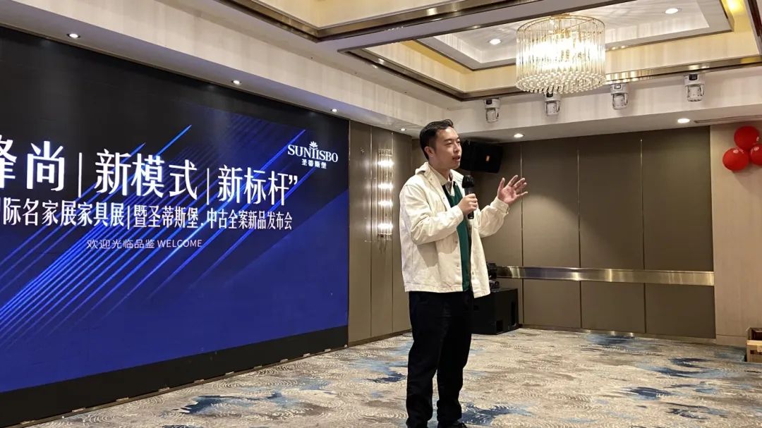接下来,6686体育工业营销部副经理吴天喜先生为我们重磅揭晓了2025春季新品中古全案系列和新古典全案升级新品,他从选材、设计、风格、工艺等方面进行了全面的讲解,并提到此次中古新品的全案模式是以更具设计感的创新方式,给予消费者整体性的体验感升级,助力大家在激烈的市场竞争中,突显差异化的优势,实现业绩的飞跃式增长。